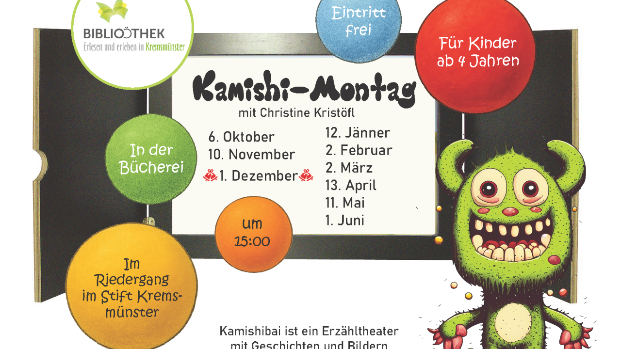 Juni, 2025 Kamishi-Montag Kamishibai ist ein Erzähltheater mit Geschichten und Bildern aus Bilderbüchern